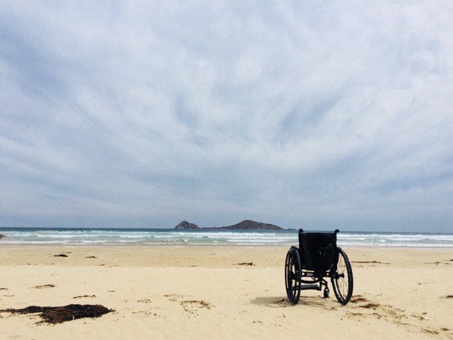 Freitag machten wir uns gegen 10 Uhr wieder auf den Weg. Unser nächster Halt war der Wilsons-Promontory-Nationalpark. Die Landschaft hier war wunderschön. Und auch der Strand war traumhaft. Ich brauchte natürlich wieder Hilfe von den Girls. Eine weite Strecke mit Rollstuhl im Sand ist eigentlich unmöglich. Die Räder buddeln sich sofort ein und man kommt nur schwer bzw. gar nicht voran. Nach ein paar Stunden am Strand machten wir uns auf den Weg zum nächsten Campingplatz! Dieser lag am 90 Mile Beach, an welchem wir den Abend mit einem Weini ausklingen ließen.