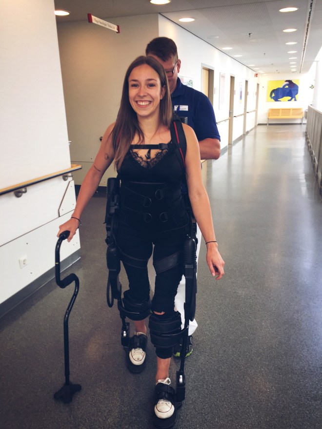 Nach meiner Australienreise waren Physio und Exo erstmal auf Eis gelegt. Ich musste meinen Semesterplan abwarten und mich dann um neue Termine kümmern. Bei solchen Dingen bin ich nicht die Schnellste. Nach einer zweimonatigen Pause habe ich dann aber sehnsüchtig wieder mit dem Exo laufen begonnen. Ich hätte nicht gedacht, dass sich diese eine Stunde laufen in der Woche mal so bemerkbar macht, aber ich hatte in der Zeit, in der ich es nicht getan habe verdammt oft und verdammt starke Rückenschmerzen. So eine aufrechte Haltung tut also nicht nur dem Kopf gut. Mein Rücken bedankt sich dafür am Meisten. Dazu kommt, dass es auch noch Spaß macht und ein gutes Training ist!