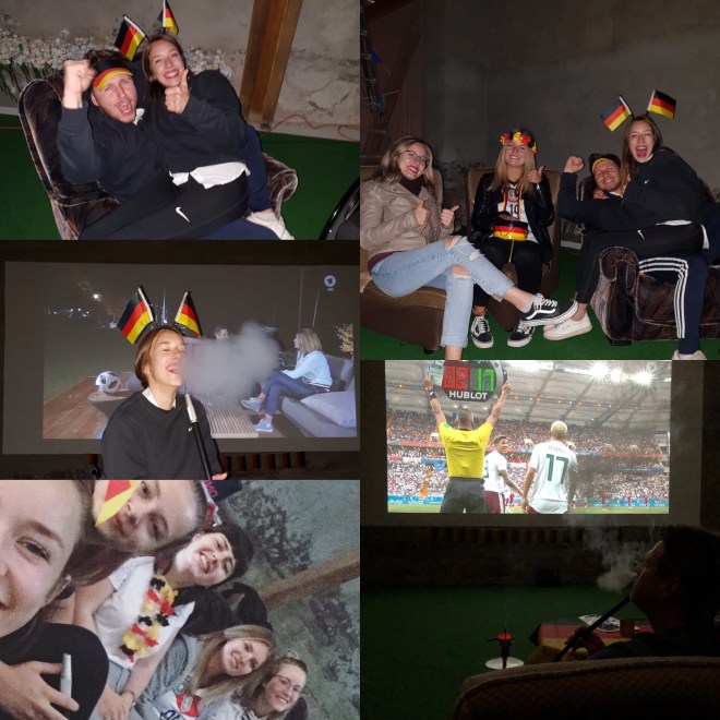 Am Abend nach unserer kleinen Sause startete dann die Fußball WM 2018. Mein Papa kam auf die brillante Idee, eine Wand unserer Scheune weiß zu streichen, einen Beamer zu kaufen und ein paar alte Sofas zu platzieren. Ich glaube wir hatten weit und breit das beste Public Viewing und immer volles Haus. Auch wenn sich Deutschland nicht von seiner Weltmeister-Seite zeigte, war es eine schöne WM vor unserer 7 x 5 Meter großen Leinwand.