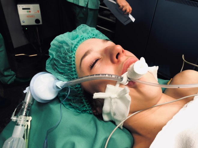 Mh … leichte Enttäuschung! Im OP selbst wurde leider kein Bild gemacht. Nur die Anästhesistin hat sich getraut und ein Foto von mir gemacht, auf welchem ich intubiert bin. Crazy! Sowas hab ich schon oft im Film gesehen und auch schonmal live im Operationssaal. Aber wenn man sich dann da so hilflos liegen sieht, ist das schon komisch.